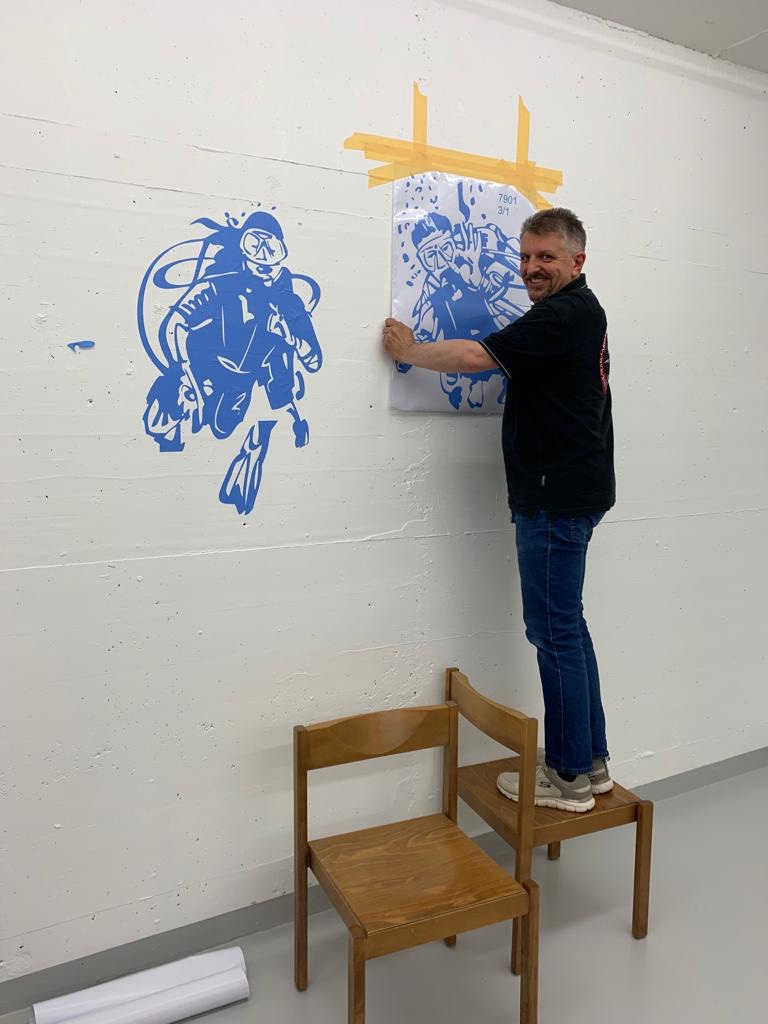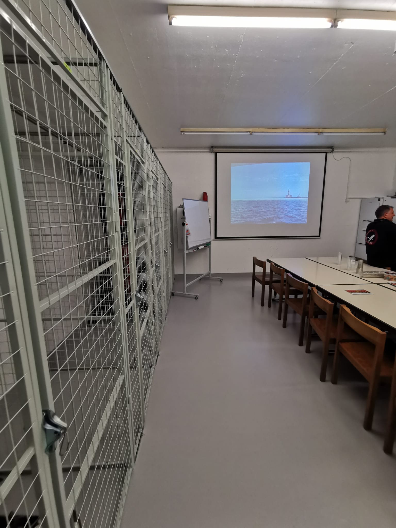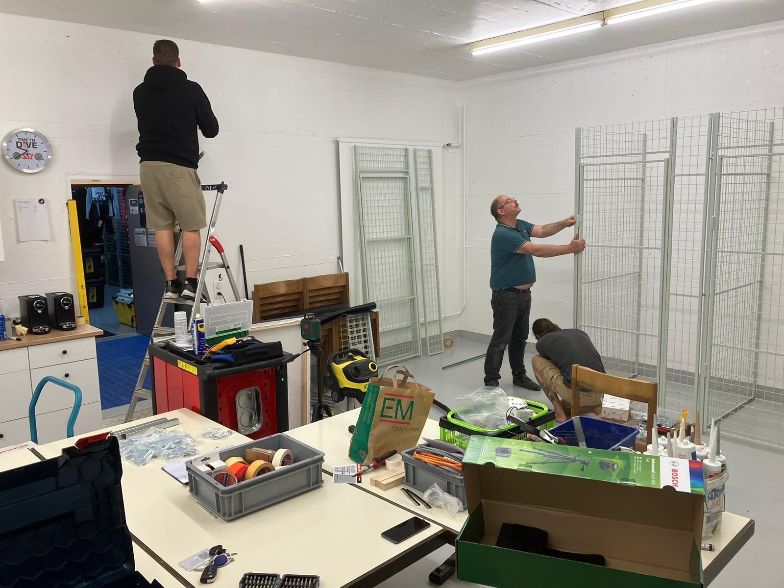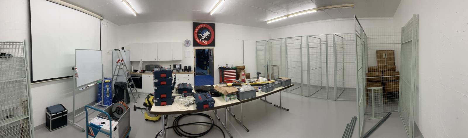 So konnten wir im April die weitere Planung in Angriff nehmen, um den nun in einem neuen Licht erscheinenden Raum, nach unseren Bedürfnissen einzurichten. Für einen symbolischen Beitrag wurden uns Tische und Stühle zur Verfügung gestellt, eine Leinwand für die Schulung geschenkt, eine kleine Küchenzeile gekauft und die Gitter für die neuen Tauchboxen wurden bestellt.