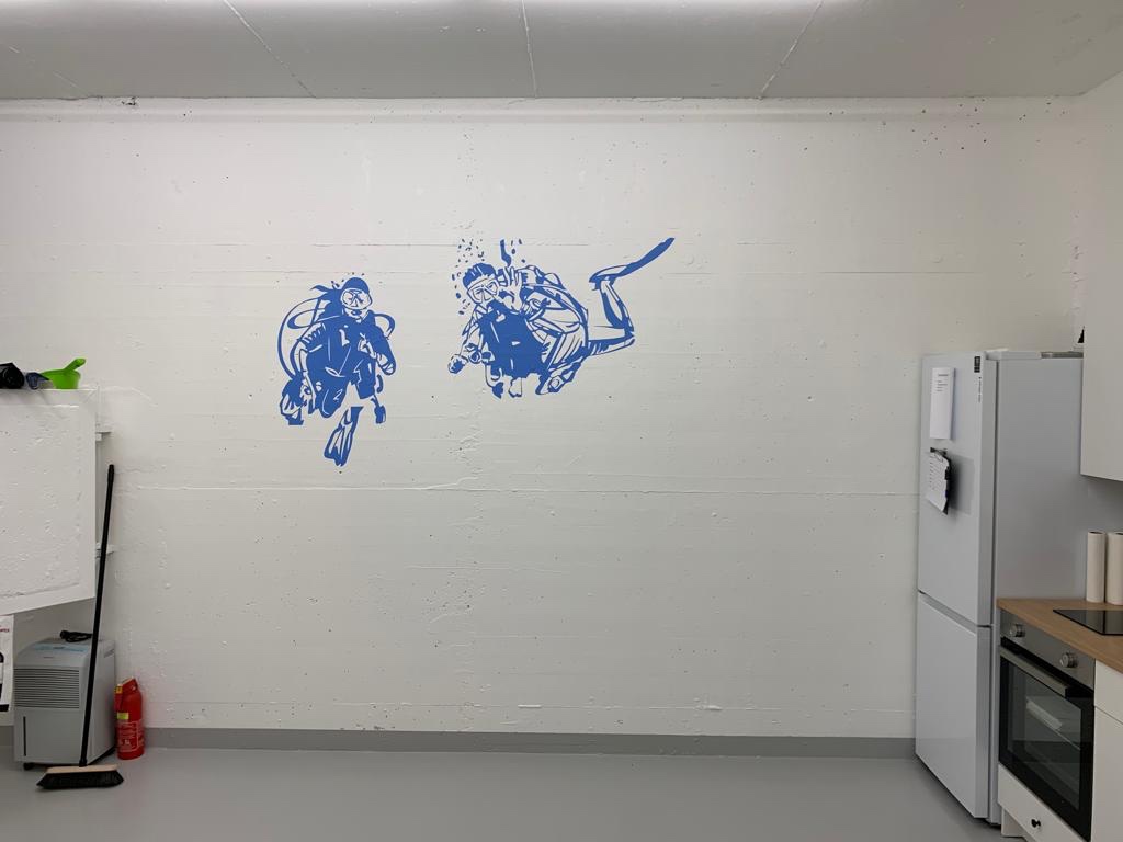 Im Vorstand wurde die Idee geäussert auch diesen Raum zu mieten. Einerseits um den Mitgliedern weitere Tauchboxen anbieten zu können. Andererseits um ein Vereinslokal zu bekommen, in dem die Geselligkeit unter den Mitgliedern und auch Schulungen der Tauchschule stattfinden können.